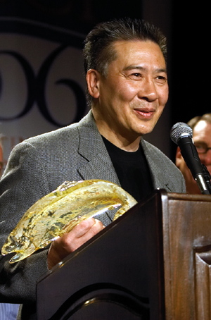 Sinegal presented Jerry Lee, MulvannyG2 Chairman, with Costco's Salmon Award, an award unique to Costco and given only to two other vendors in the past.