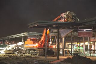 Photo courtesy of Nuprecon Inc. Nuprecon Inc. is demolishing a bus loop canopy at the Pentagon as part of a renovation project to improve security for the nation's military headquarters by moving the bus system further from the building. |