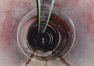 CableRunner's Flexible System fiber optic infrastructure installed along the crown of a non-man accessible sewer pipe using FiberCop robotic technology.