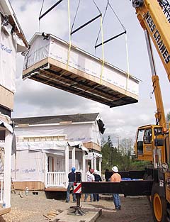 Five factory-built townhouses at Kokanee Creek were assembled by crane in a single day.