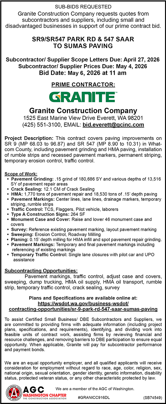 | SR9/ SR547 PARK RD & 547 SAAR TO SUMAS PAVING Granite Construction Company |