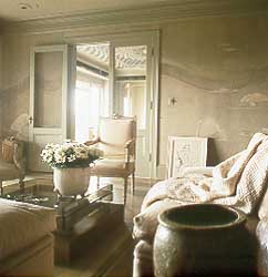 "I like (to cover) floors, walls and furniture in either custom-woven fabric or something that's very honest and direct, like canvas," to emphasize clients' tastes and interests, she once said.