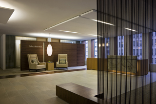 Encompassing a total of 480,000 square feet in two locations, the design was driven by Safeco’s desire to create an environment that would satisfy both employees and shareholders. The design team’s response was to respect the Northwest’s aesthetic by using warm, natural materials, including solid wood and wood screens, natural silk wall panels, metal screens and gossamer fabrics.