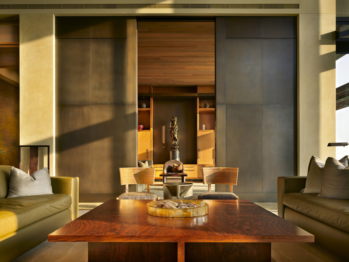 The owner had most of the building materials and custom furniture shipped from Seattle. Craftspeople from the Pacific Northwest fabricated furnishings and finishes.