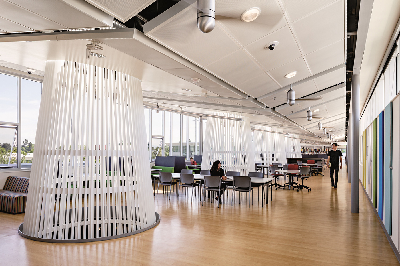 If you visit Portland Community College's Southeast Center library you'll probably notice some giant cones passing through the ceilings and floors.
