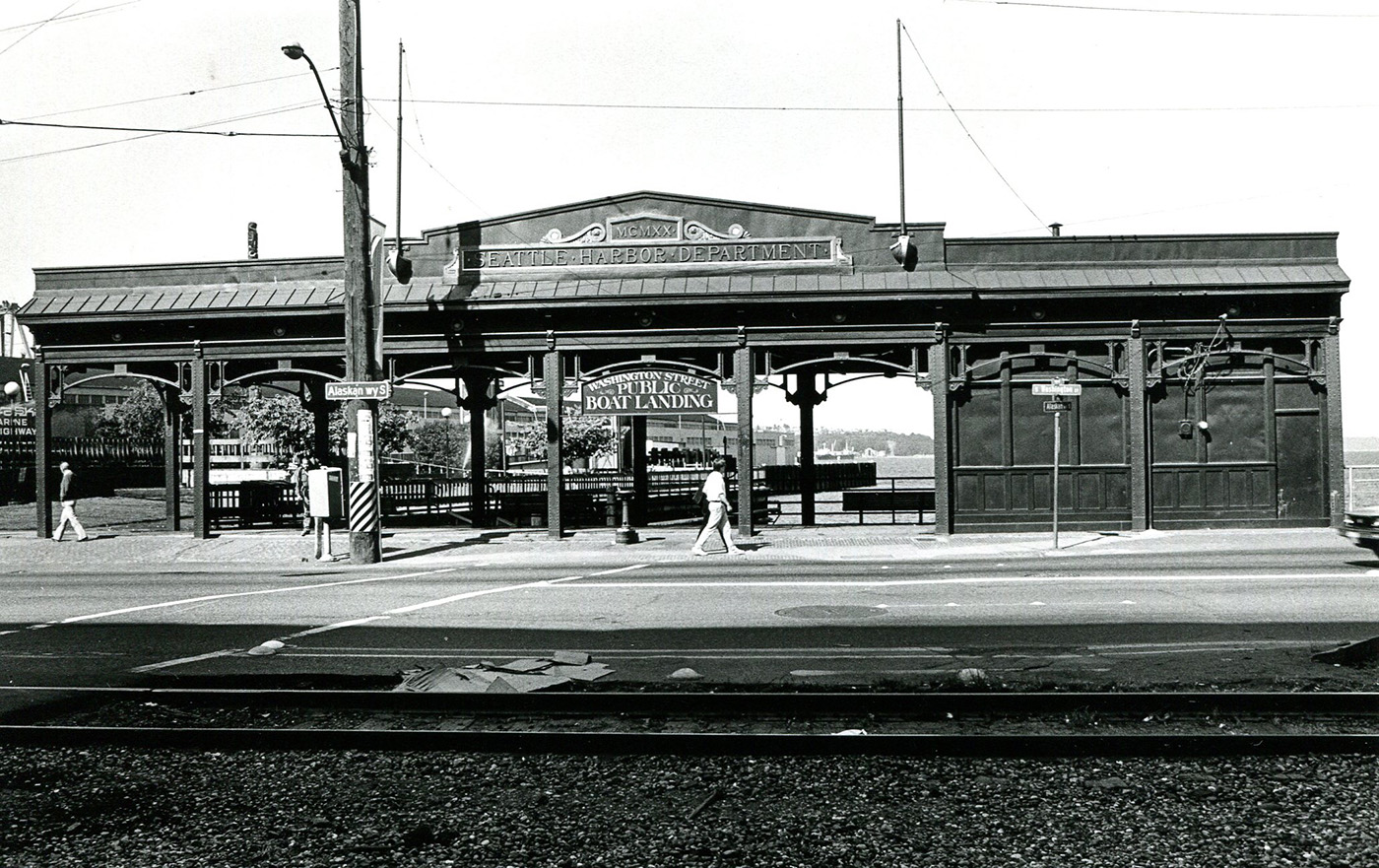 The pergola at the Washington Street Boat Landing was hauled away in 2014 in preparation for replacing the Elliott Bay seawall. Part of the 95-year-old pergola rested on the aging seawall at South Washington Street.