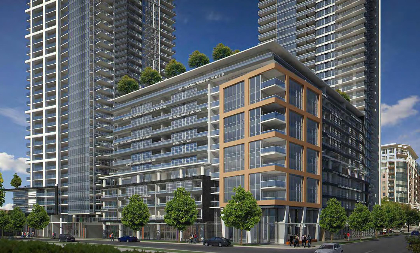 The site is at 1120 Denny Way. The plan calls for a pair of 41-story residential towers with a total of 1,179 units. About 28,000 square feet of retail is included as well as 1,461 underground parking spaces.