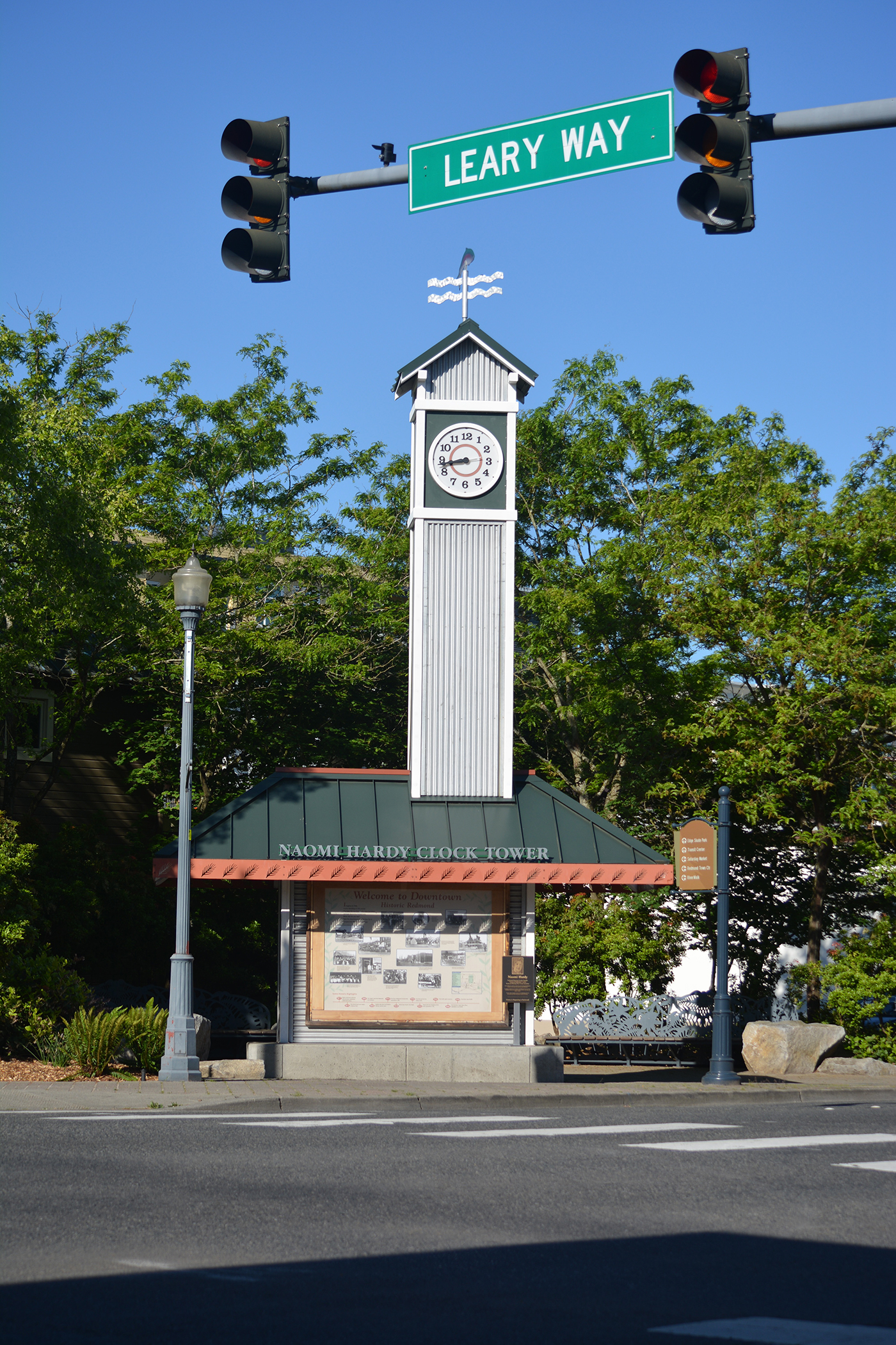 The clock tower and kiosk that anchors Redmond's historic core along Leary Way has been named after Naomi Hardy, a local history advocate.