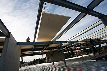 Cross-laminated timber has been used in Europe for a couple of decades but is just catching on in the U.S. Some local projects that used CLT are First Congregational Church in Bellevue, a home in Seattle's Madison Park and Shoreline Medical & Dental Clinic.