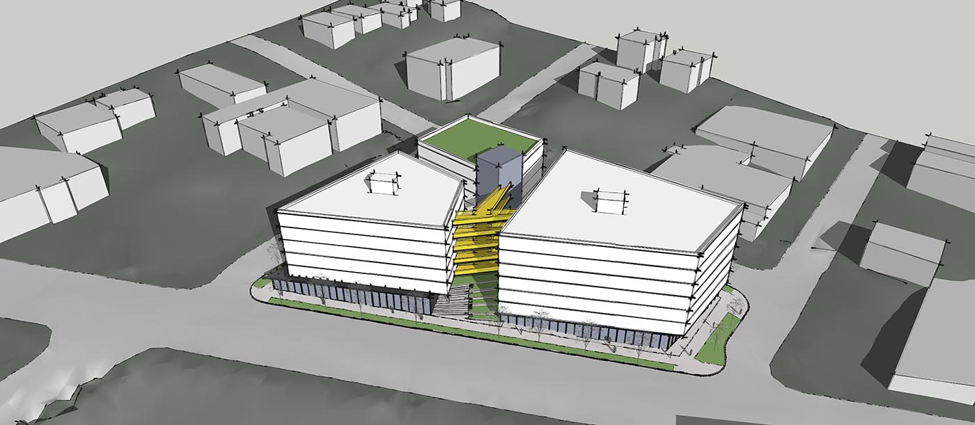 The complex would have a rooftop deck, central courtyard and elevated walkways with artwork connecting the buildings. Weisman Design Group is the landscape architect.