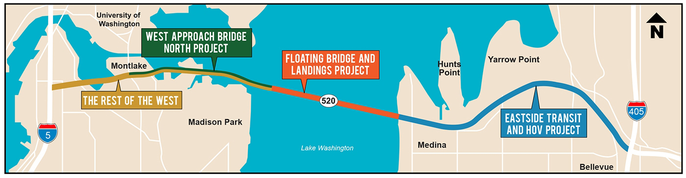 The Montlake Phase is the first part of the Rest of the West project. The next phase includes a new Portage Bay Bridge, a lid at Roanoke and a new interchange to I-5.