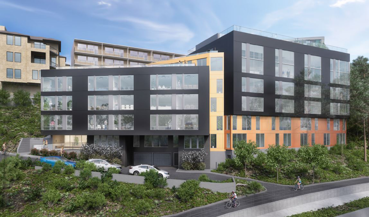 A second and likely final design review is set for next week on a 58-unit apartment building that is planned for a steep site above Interstate 5.