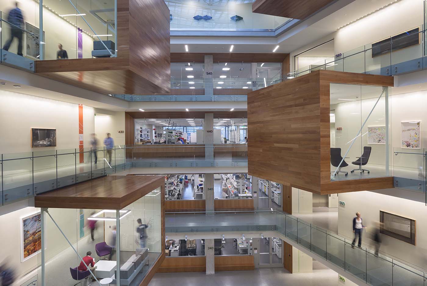 In a press release, Perkins+Will said the design embodies the institute's research philosophy. The design broke down the typical barriers in research environments to foster team science and advance brain research.