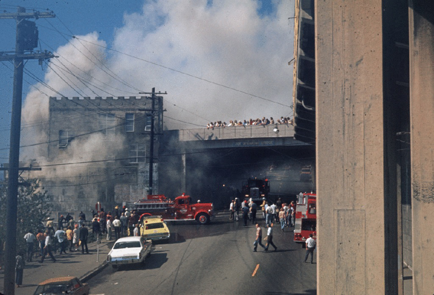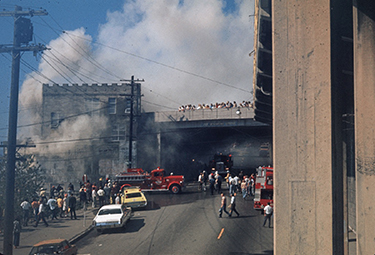 After the Municipal Market Building was demolished after a fire in 1974, the 0.75-acre site was graded for surface parking. The site remained that way, with a wooden staircase leading up to the Desimone Bridge and into the Market’s North Arcade, until the groundbreaking of the MarketFront project in June 2015.