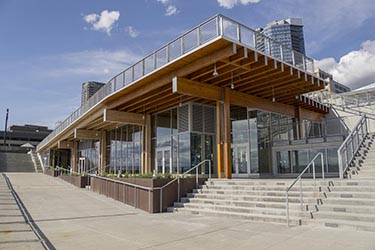 The design team looked to existing 20th-century industrial structures and simple materials, such as exposed timber beams, found throughout the Market. The building incorporates Northwest-style industrial toughness with large, open spaces that offer transparency inside and out.