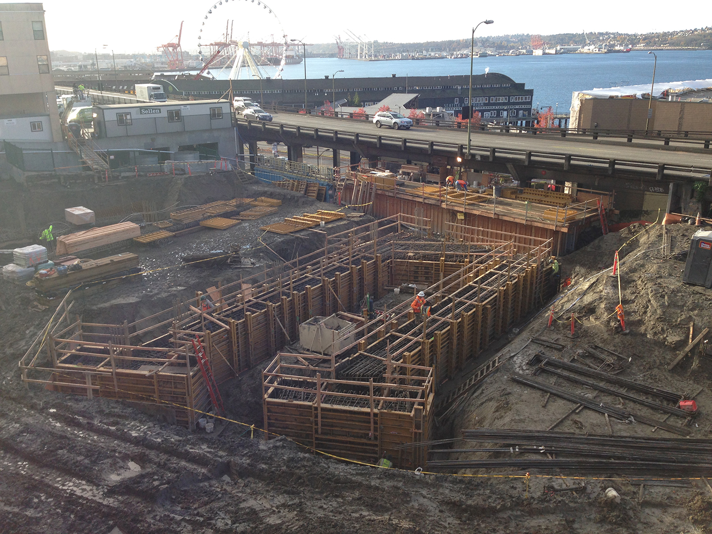 Buried in a steep hillside currently hidden beside the Highway 99 viaduct, the MarketFront building is also a retaining structure.