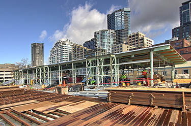 Hidden below the dramatic Puget Sound views at the Pike Place MarketFront building is a complex structural system reflecting a daunting set of constraints imposed by the 100-plus-year use of the site, and the very diverse new building program.
