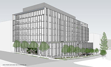 The 200,000-square-foot structure will rise seven stories above Eastlake and nine stories above Yale.
