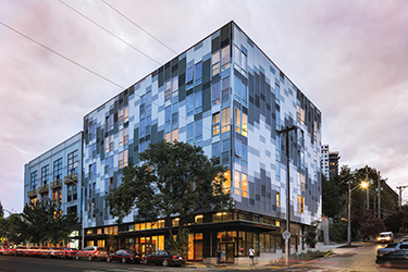 Plymouth Housing Group developed Plymouth with studios: 77 for formerly homeless people and three for live-in staff. SMR said additional services are provided by partnering with Harborview Medical Center for on-site nursing, medical care, mental health and substance abuse treatment. Walsh Construction Co. is the builder.