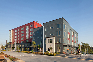 Mercy Othello Plaza in Seattle won a merit award for affordable housing (100 units per acre or more). The team is Mercy Housing Northwest, developer; Ankrom Moisan Architects, architect and planner; Rachel Weigelt, interior designer; and Walsh Construction Co., builder.