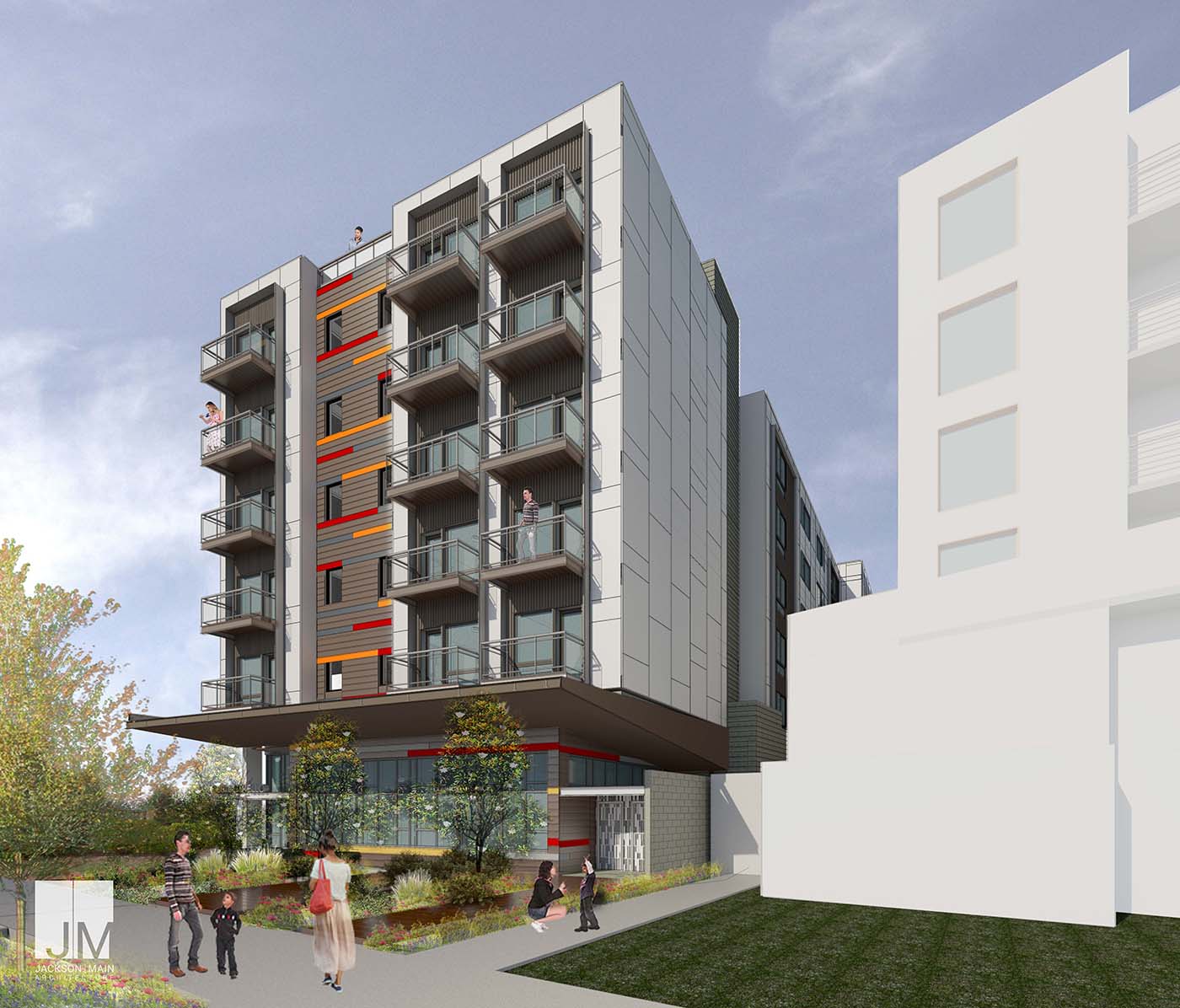 The first two floors will be traditional concrete/steel construction. The modular units will be stacked similar to Legos on the top five floors, after arriving at the site fully built from the Metric Modular factory in Vancouver B.C. Those floors will be completed in three weeks rather than the typical eight months, according to Jackson | Main.