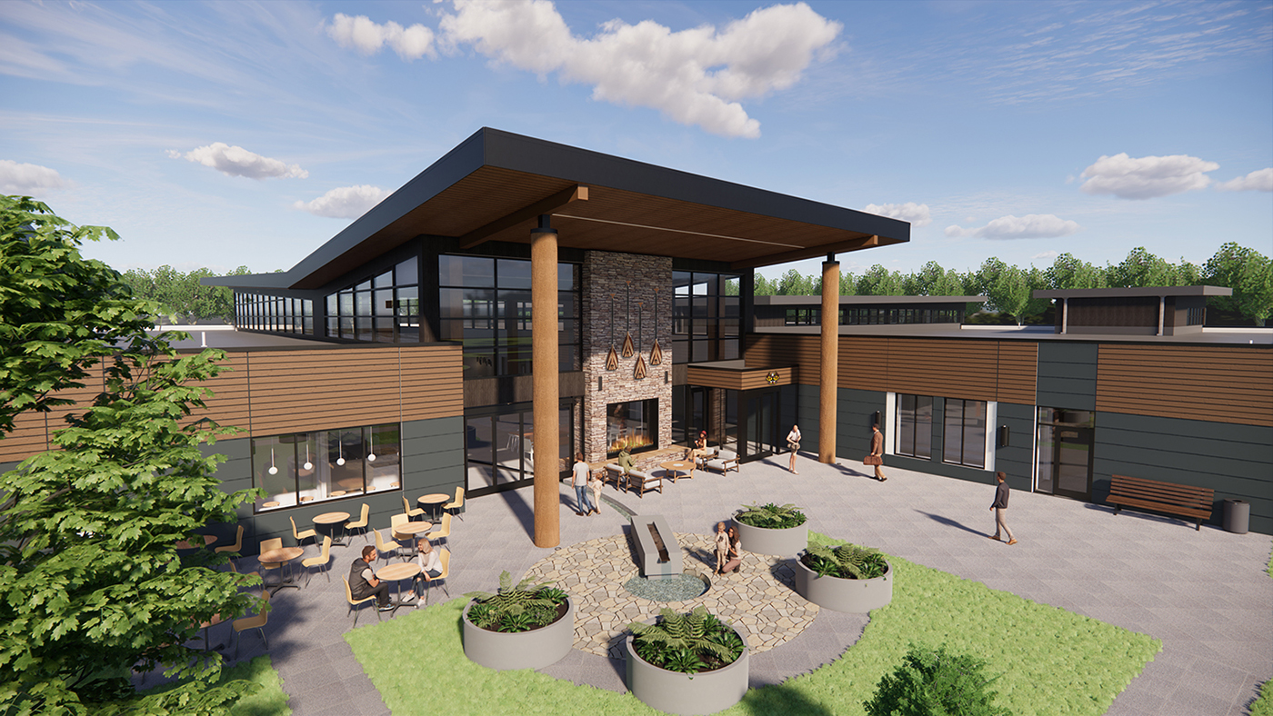 The lobby is oversized to allow it to be used for large-scale community events — a space the community currently lacks. It will have a cafe, indoor-outdoor fireplace, spaces to tell the history of the Lummi Nation and a community culture room where members can practice traditional tribal arts.