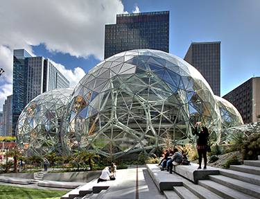 Amazon in the Regrade was built over a number of years and completed in 2019. It covers three city blocks in the Denny Regrade neighborhood, and includes three 38-story office towers, retail, large assembly rooms, outdoor public areas and The Spheres as its iconic centerpiece, Magnusson Klemencic Associates said in a press release.