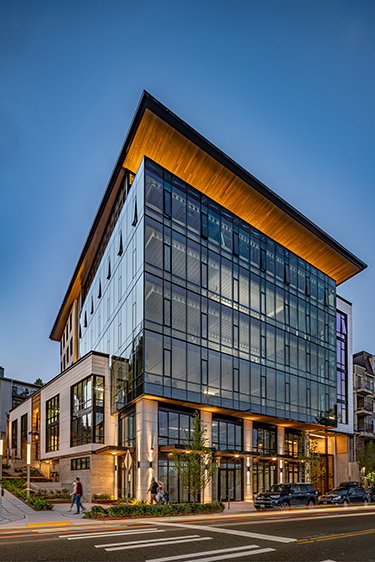 The firm's work includes high-rises, high-density urban infill, residential, commercial office, hospitality and affordable housing. Its new second-floor office in Suite 200 was built by Schuchart and overlooks a cascading bioswale that cleans diverted runoff from the Aurora Bridge.