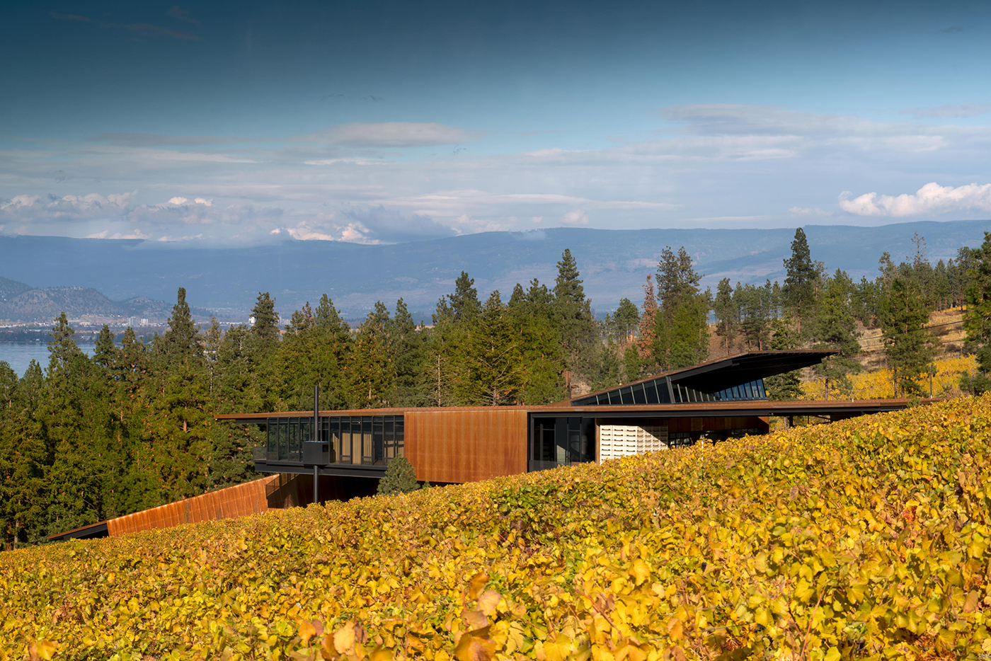 Martin's Lane Winery, on Okanagan Lake, leverages its relationship to the land for two complementary functions, according to information on the AIA website. The winery represents the client's decades-long commitment to the Okanagan Valley and its importance on the world's vinicultural map.