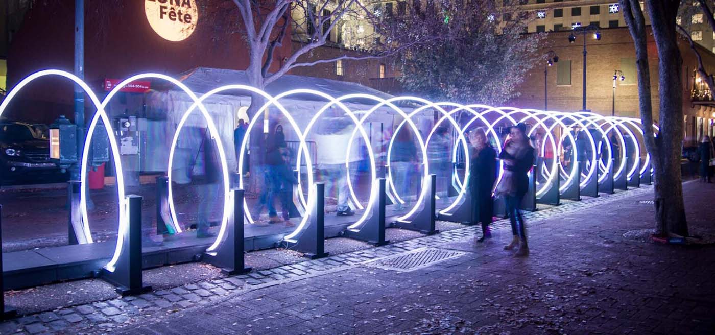 “Passage” consists of 20 circles of light that form a tunnel that you can walk through.