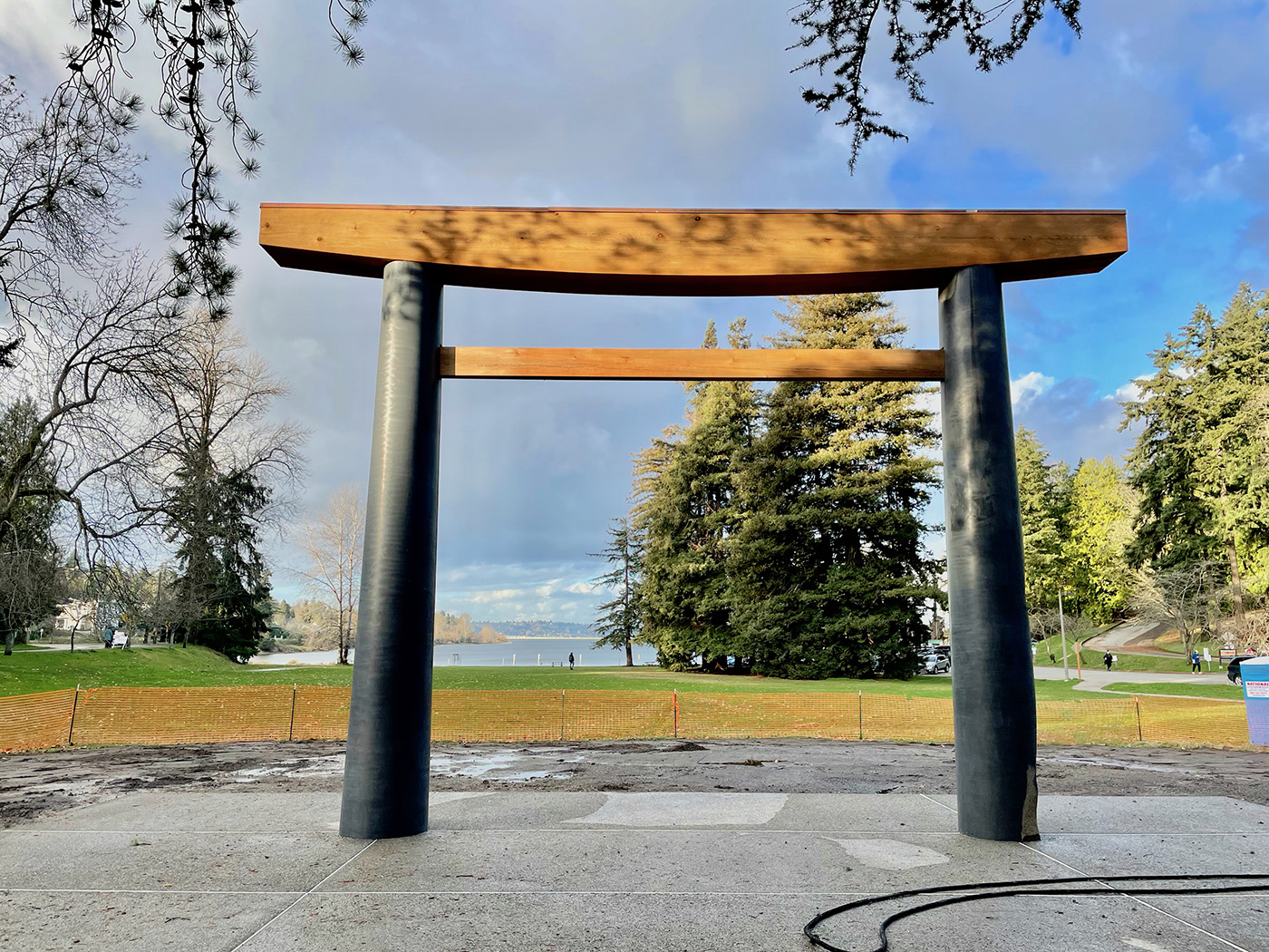 Seward Park, at 5902 Lake Washington Blvd. S., has a new torii Gate. The gate replaces a 26-foot timber torii given to the city by Seattle's Japanese American community in 1934, which was removed in the 1980s due to decaying beams. The new torii is designed by landscape architectural firm Murase Associates and is built with native basalt and western red cedar.