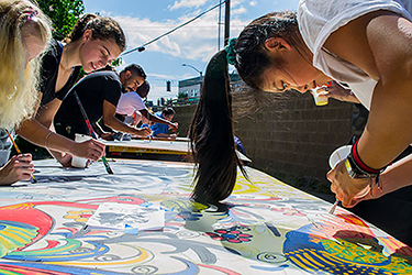This March, Urban ArtWorks piloted a new program at Rainier Beach High School that engages students in the production of a series of colorful murals for the campus. The project is the brainchild of teacher Steven Miller who reached out to Urban ArtWorks, wanting to provide his Theory of Knowledge classes with the opportunity to create art.