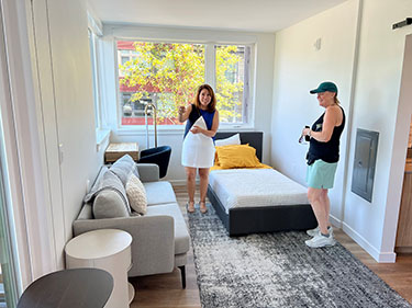 Seventy units will be permanent supportive housing and the rest are affordable studios. All units are either classic studios or studio-lofts. Some of the affordable apartment units have private balconies with unobstructed views of the lake.
