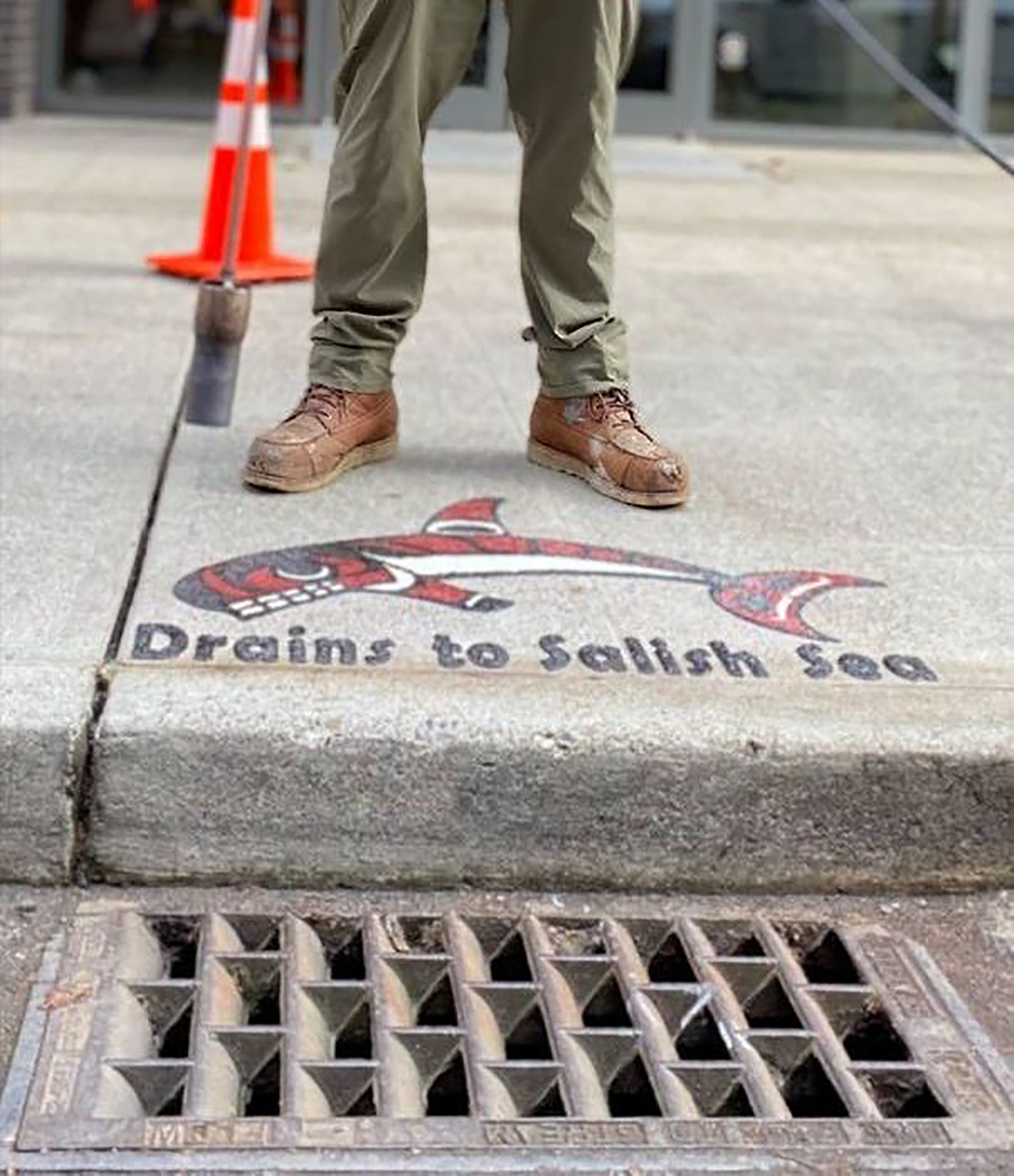 Last week, as part of its broader Pioneer Square Green Space Improvement Project, the Alliance for Pioneer Square oversaw the installation of a new artistic storm mural at 510 Occidental Ave. S.