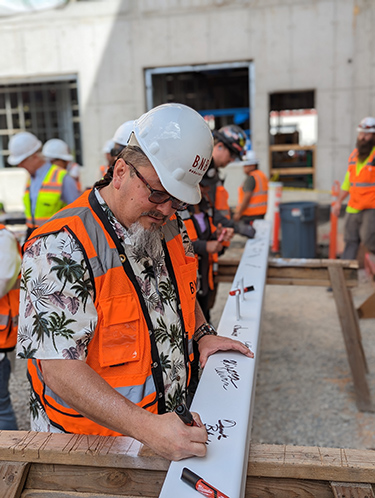 Crews from BNBuilders topped out the five-story building last month. A celebration event was hosted by BNB, with Chief Seattle Club elders providing a traditional blessing ceremony to mark the occasion.