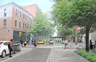 The design will also implement safer and shorter street crossings. South Washington and South Main streets will become one-way streets to reduce vehicle traffic while still allowing for emergency vehicle access. Parking and loading zones for neighborhood businesses will be maintained.