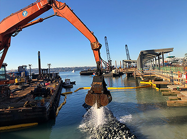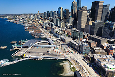 These marine improvements were created on state-owned property thanks to an agreement between the Washington State Ferries and the city of Seattle.
