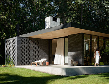 The three-bedroom two-bath house has a solid rectangular volume, like a typical one-story rambler, which runs east to west across the project site. A singular vertical element, a site-cast fireplace and chimney, disrupts this massing and provides a centerpiece at the heart of the main living space where the family gathers and where music is written. The jury appreciated the project's elevation, revealing of the creative process, and preservation of the landscape while also celebrating the community it provides for neighbors.