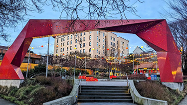 A new permanent canopy of golden lights and red and yellow lanterns has been installed at Hing Hay Park in the Chinatown-International District (CID).