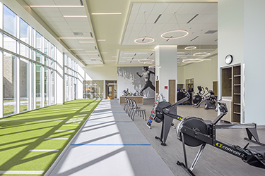 Encouraging individuals to visit the facility for wellness activities and not solely for health emergencies allows Wayne to empower and educate the community about health issues proactively. This concept inspired the creation of a rehabilitation and wellness center on the ground floor near the new main entrance. This center, which includes a community center, education demonstration kitchen, and fitness center, places Wayne’s commitment to community health and wellness center stage.