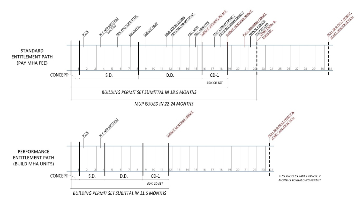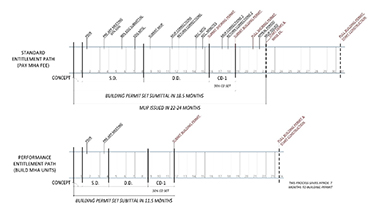 This change could save a project six to seven months from project start to construction date, and allows projects to begin construction in 14-18 months, or even faster, based on the construction phasing chosen by the development team.
