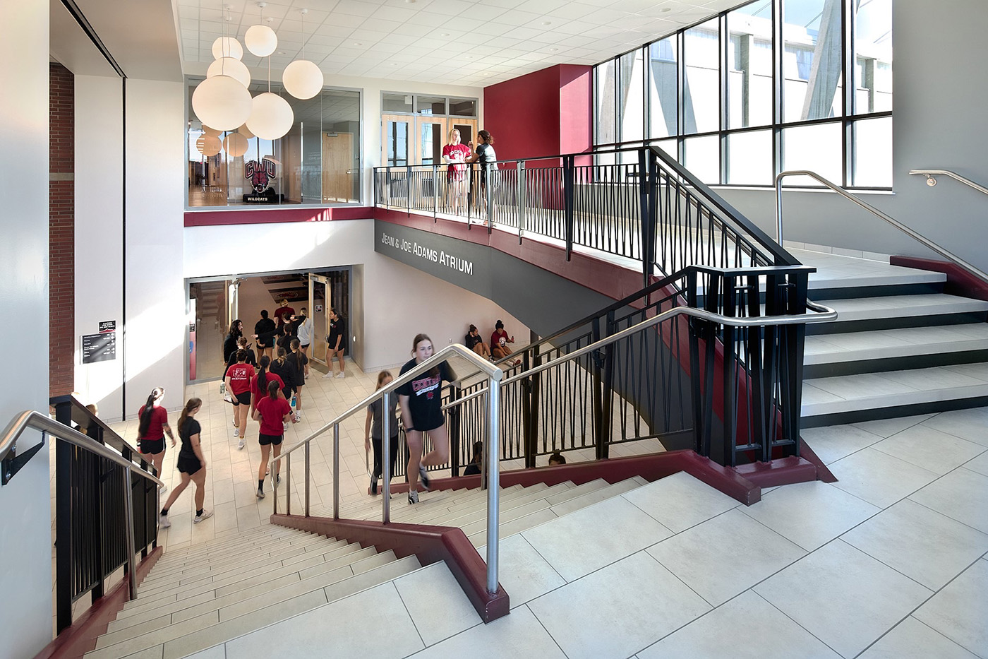 Around 108,000 square feet has been modernized in the existing buildings. The addition, adjacent to Nicholson Pavilion, has an auxiliary gymnasium, dance and studio space, weight rooms for physical education and athletics, bathrooms and locker rooms, classrooms, meeting rooms and administrative spaces.
