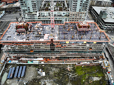 The twin 45-story towers that will comprise Concord Pacific and HB Management's luxury mixed-use apartment building called Seattle House have reached level 13.
