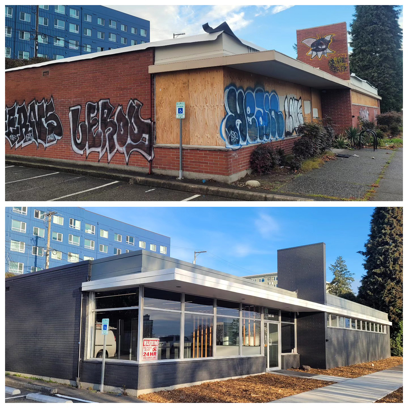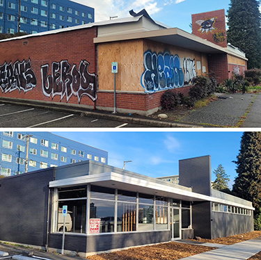 The studio is in a single-level building that was formerly the home of Tacoma Public Schools' (TPS) Willie Stewart Academy. The firm purchased the building from TPS and has designed and overseen a dramatic renovation of the property, both inside and out.