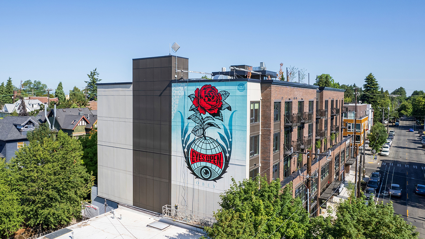 A new mural by artist Shepard Fairey now graces the Capitol Hilltop building.