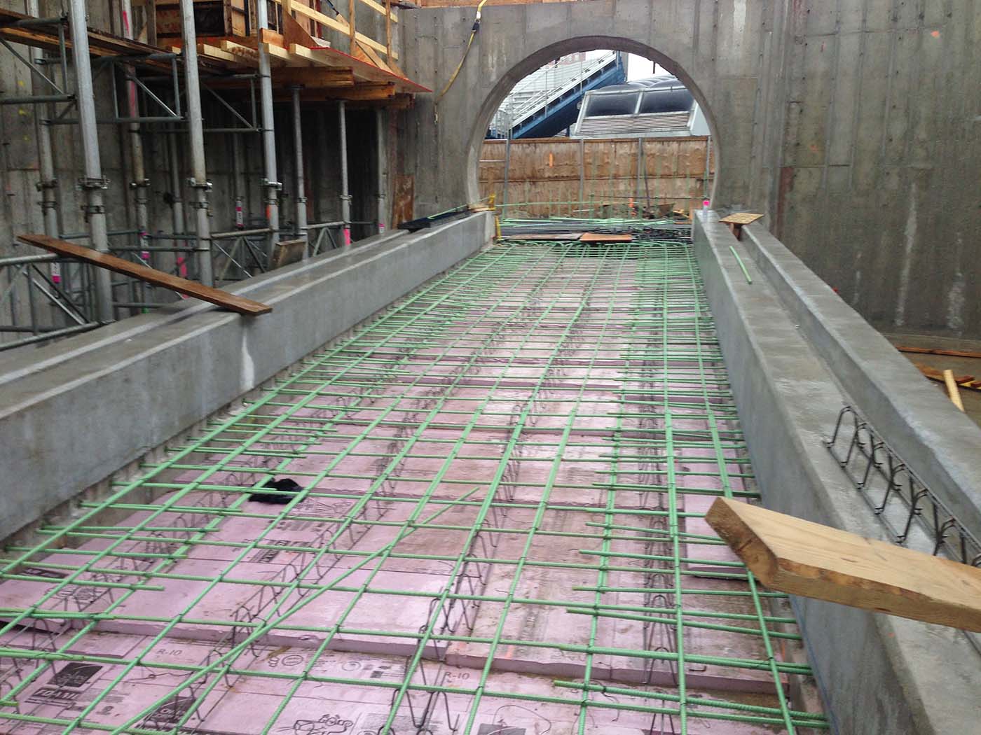 When an aquarium requires large acrylic windows and acrylic tunnels for viewing exhibits, the vessel design must consider the transfer of large forces at the points where the acrylic panels bear against the concrete framing. This is where the structure is most vulnerable to leakage and where the detailing of rebar and placement of the concrete must provide a crack-resistant, well-consolidated, and watertight system.