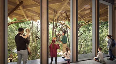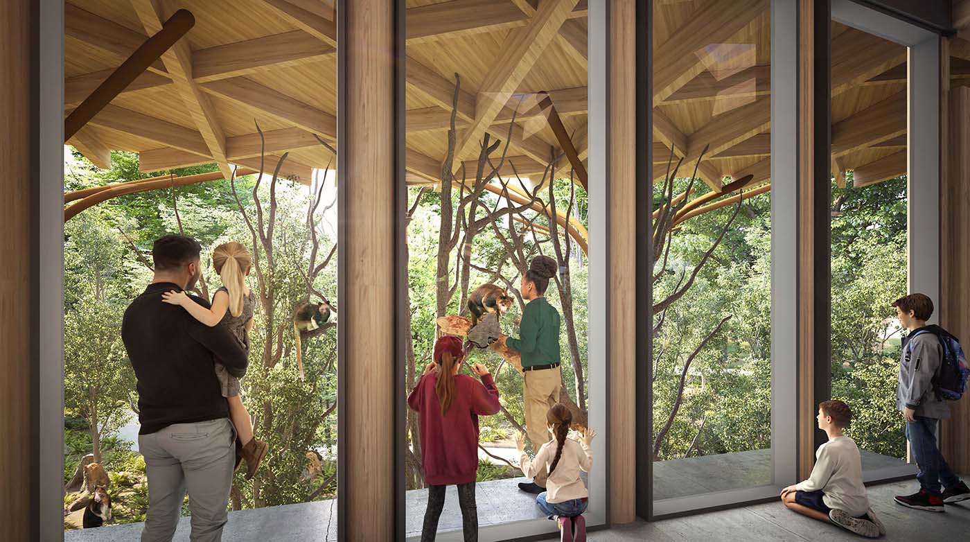 Global in its scope, the building's exhibits include habitats for tree kangaroos and red pandas—key animal populations for which the zoo supports conservation efforts, including a quarter century's investment in Papua New Guinea and emerging efforts in Nepal. With the success of this conservation work being its interconnected nature across scales, the design of Forest Trailhead sets up an experience where zoo visitors can see both the animals and their forested habitats from multiple shifting perspectives.