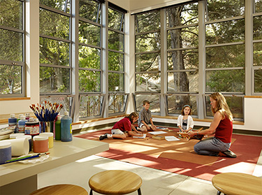 Marin Country Day School, a lower and middle school, is nestled in the valley of Ring Mountain in Nothern California, just north of the San Francisco Bay. A seasonal creek that runs along the school’s eastern edge eventually makes its way to the nearby bay. Student life at the school is anchored to this creek. Lines of muddy rain boots mark the entries to lower school classrooms, and middle school students often sit in small groups on the rocks lining the creek’s edge.