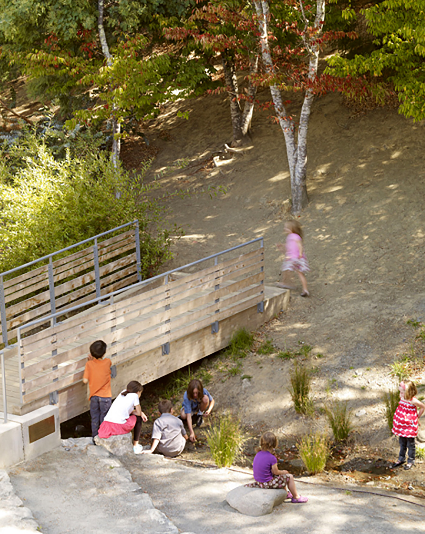 The easiest way to protect and rehabilitate the creek would have been to block it off from student use. But, as in many of our school projects, we learned that meaningfully involving the students in solving design problems always leads to more creative and impactful solutions.