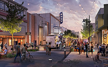 The vision, according to the city, is to “revitalize a long-neglected street into an active, housing-based, day-to-night urban center with focused arts, entertainment, and evening-centric retail spaces.”